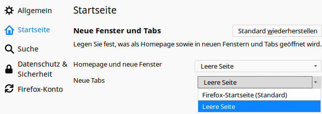 activity-stream für die Startseite und NewTab Seite abschalten: