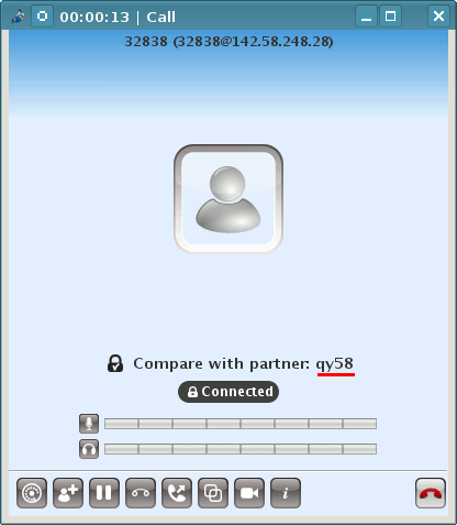 Üblicherweise nennt der Anrufer die ersten beiden Buchstaben und der Angerufenen die beiden letzten Buchstaben. Wenn die Zeichenfolge identisch ist, kann man davon ausgehen, dass kein Man-in-the-Middle das Gespräch belauschen kann.